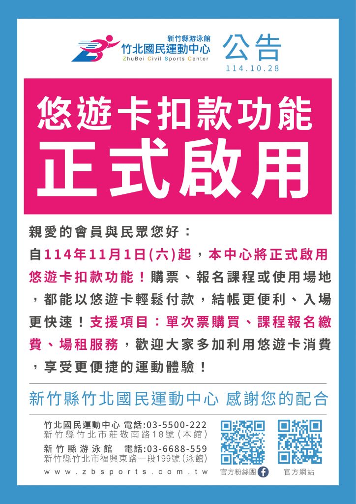 歡迎大家多加利用悠遊卡消費,享受更便捷的運動體驗!