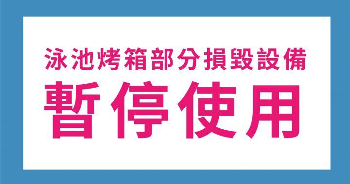 【泳池烤箱部分設備損壞暫停使用公告】 Posted on 2026-02-042026-02-04 by zbsports_write 本館泳池烤箱因部分設備損壞,基於安全考量,該部分設備即日起暫停使用。 其餘未受影響之設備皆可正常使用,相關設備目前已安排檢修,將儘速完成修復作業。 造成不便,敬請見諒,感謝您的體諒與配合。 新竹縣竹北國民運動中心 敬啟 Posted in 最新消息.