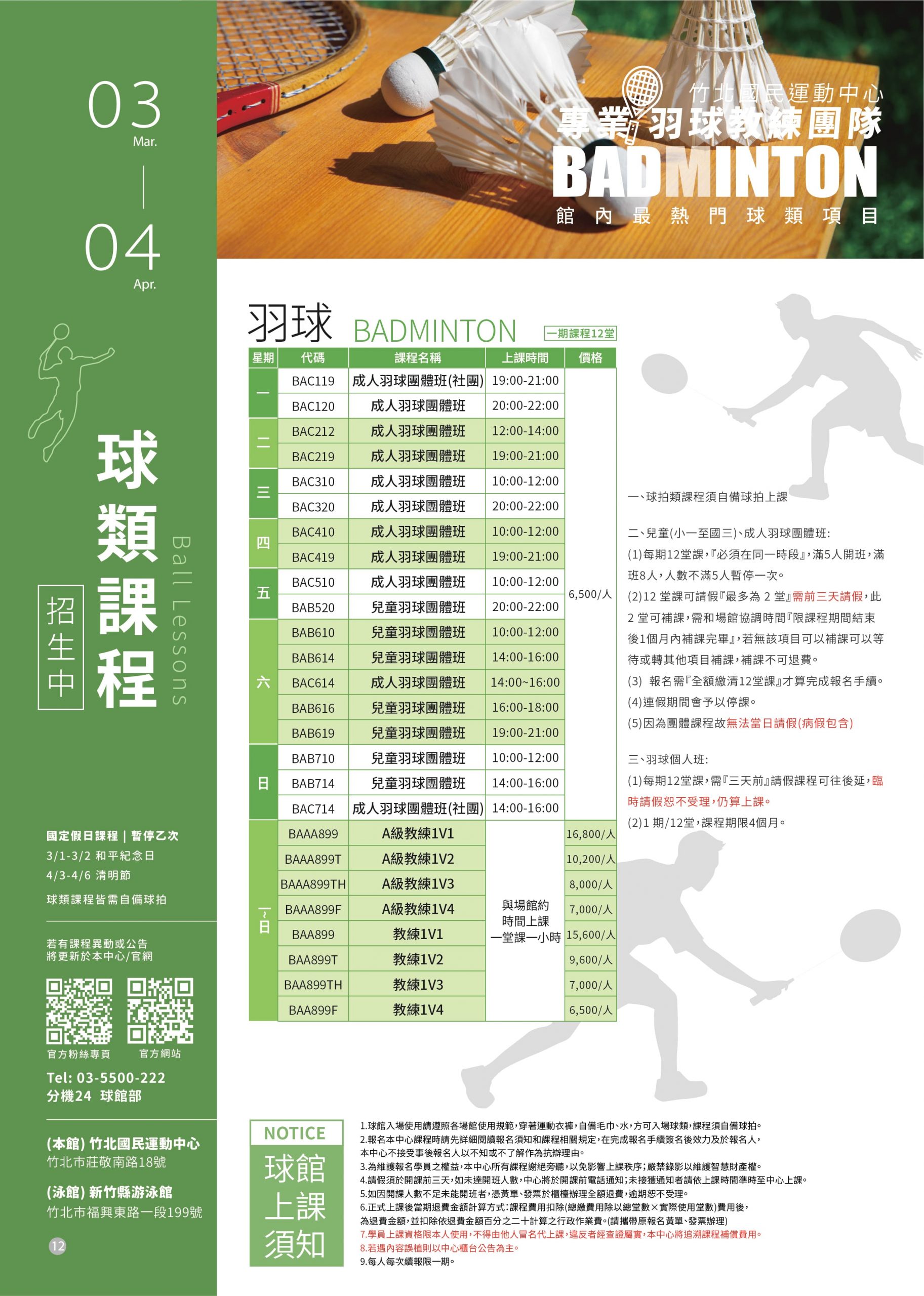竹北 國民運動中心 球類課程